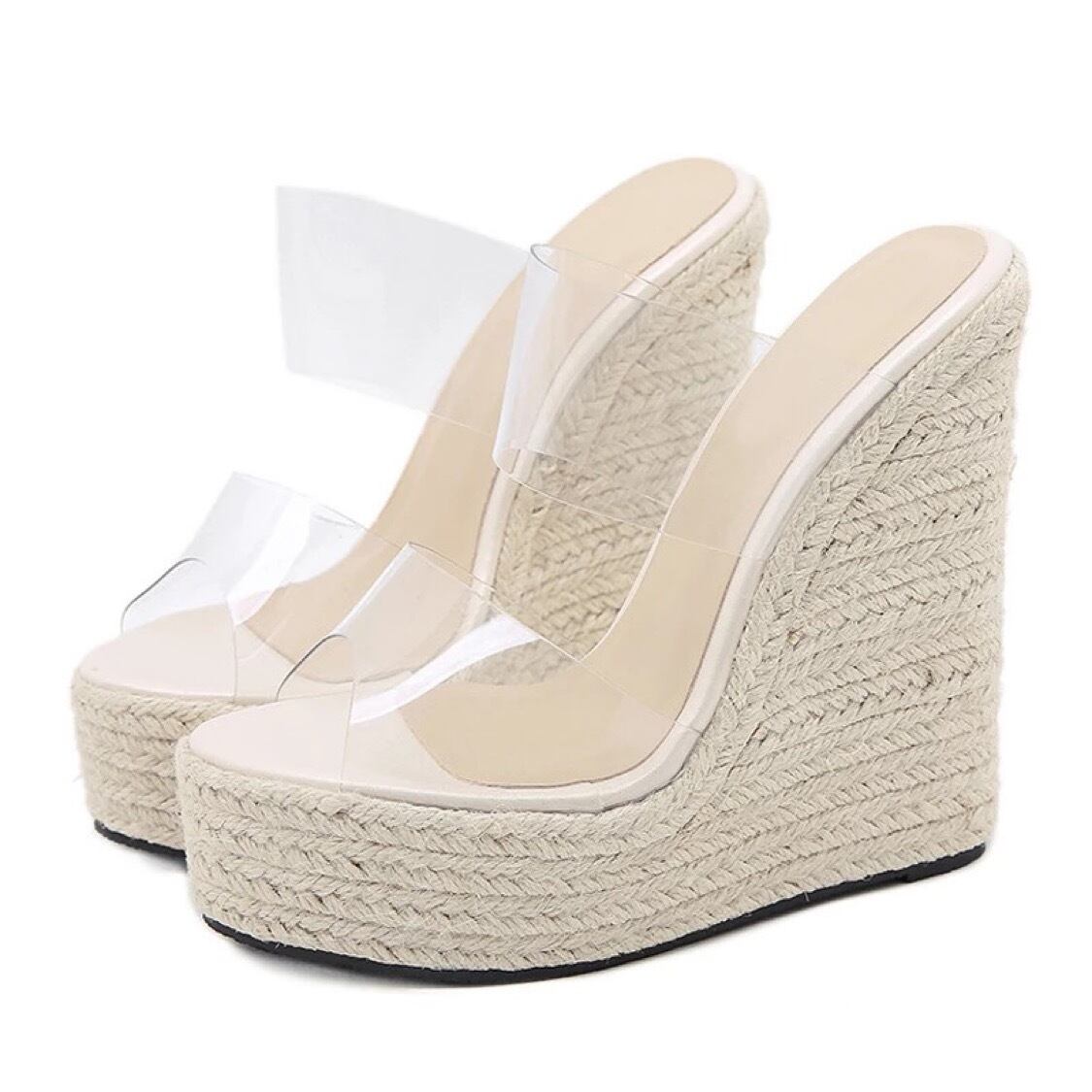 インポート 厚底クリアサンダル ジュートサンダル ウェッジソールヒール 14.5cmヒール